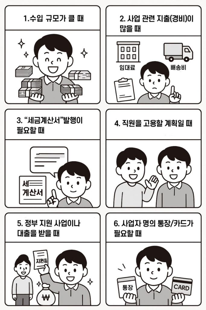 단순히 ‘귀찮아서’ 혹은 ‘세금이 무서워서’ 결정을 미루기보다, 아래 5가지 기준에 해당한다면 사업자등록을 적극적으로 검토해야 합니다.